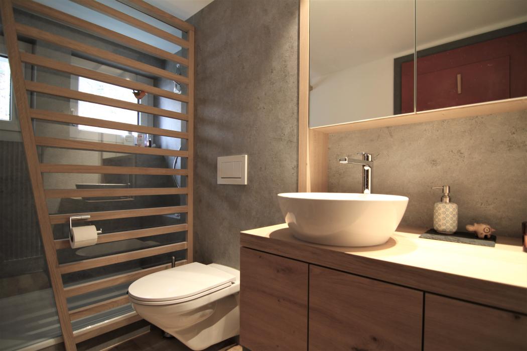 Badezimmer mit Trennwand in Eiche Hand am Werk GmbH Rosenweg 4 6078 Lungern ursgut@handamwerk.ch www.handamwerk.ch Zum Unternehmensprofil Arbeitsbereiche Badezimmer / Wellness Innenausbau Planung / Innenarchitektur Umbau / Restauration