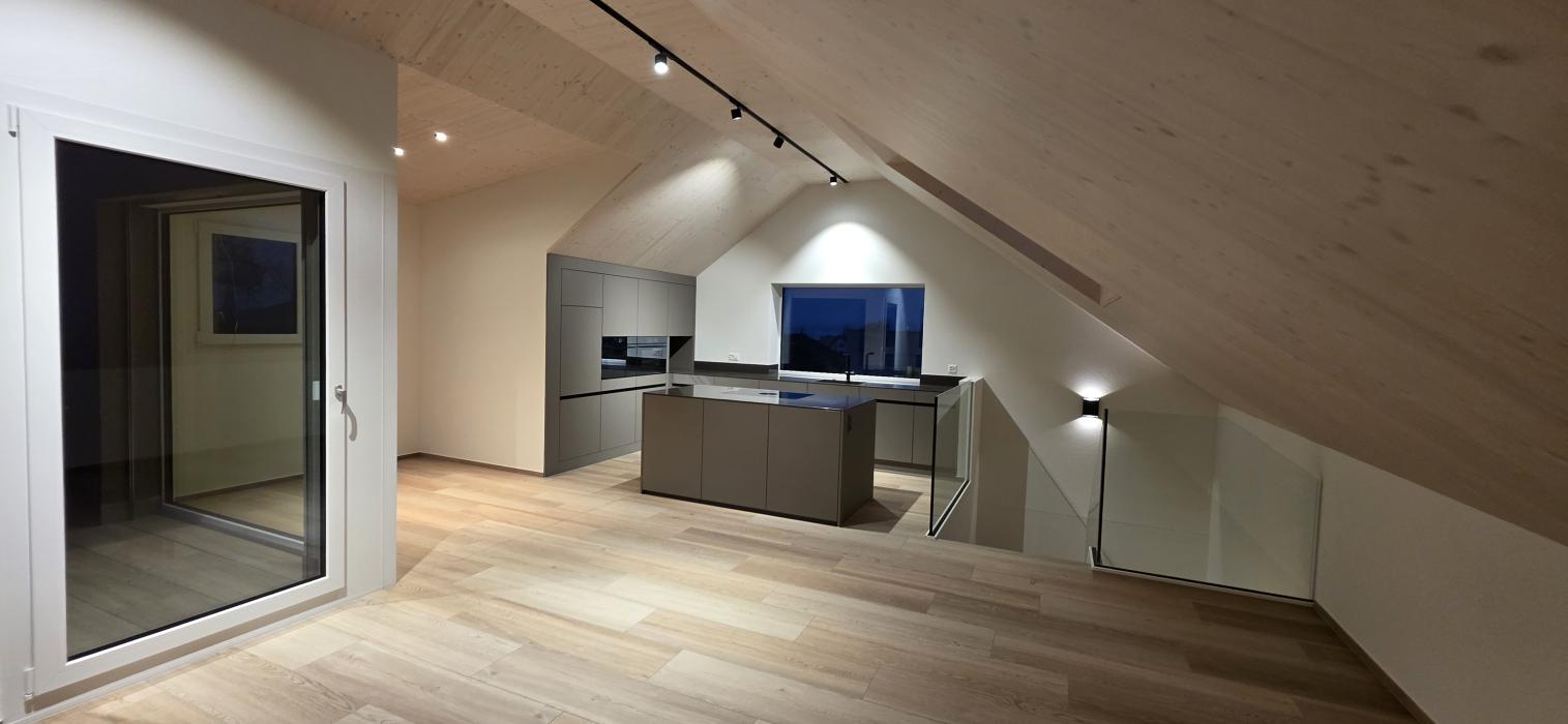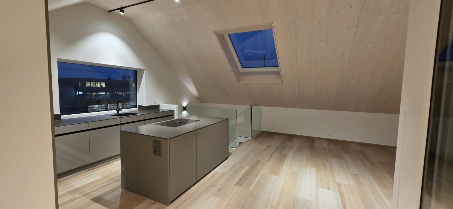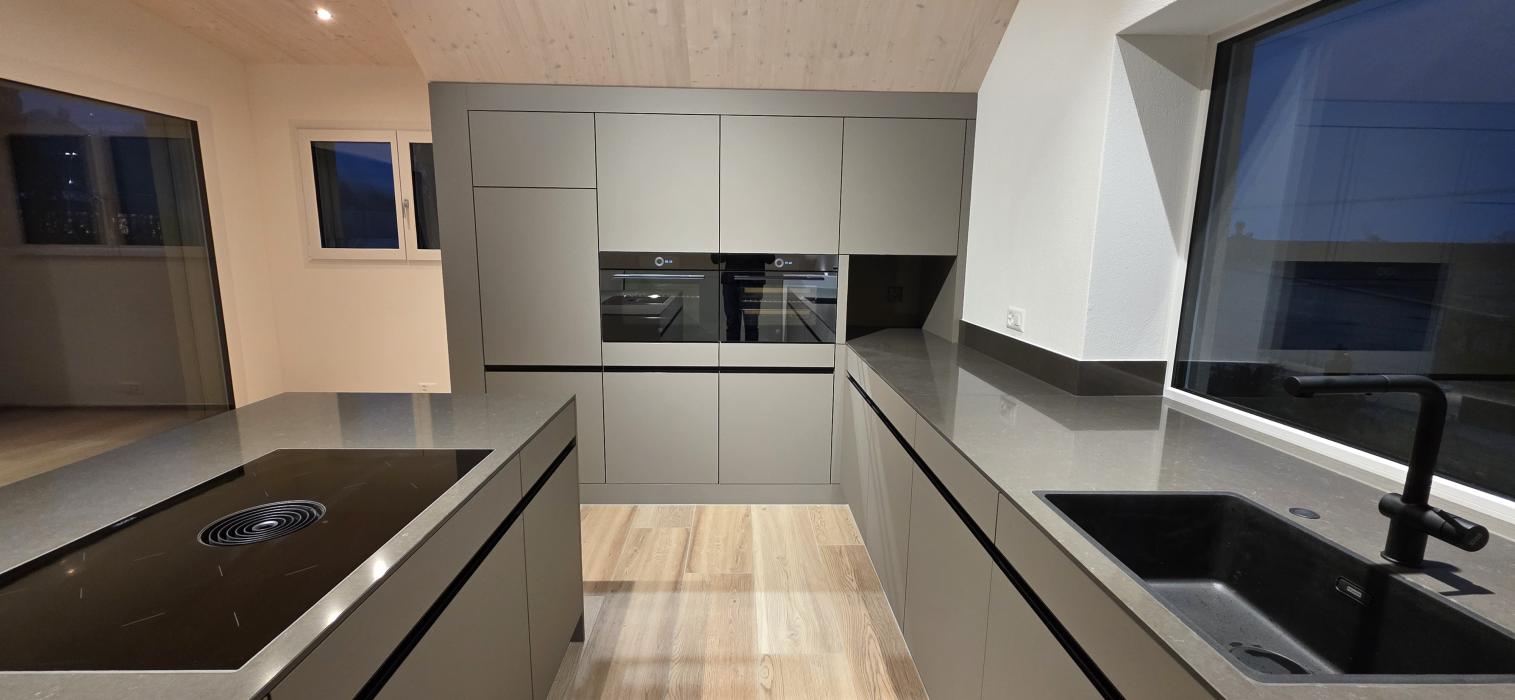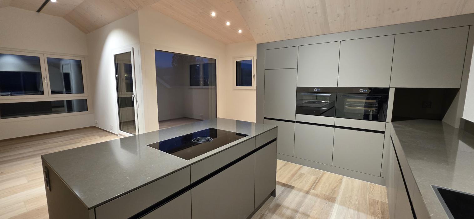 Dachgeschossküche Bauobjekt: 2025 Föhn Schreinerei AG Industrie 15 8842 Unteriberg 055 414 13 65 info@foehn-schreinerei.ch www.foehn-schreinerei.ch Zum Unternehmensprofil Arbeitsbereiche Küchen