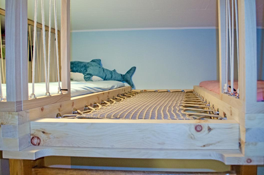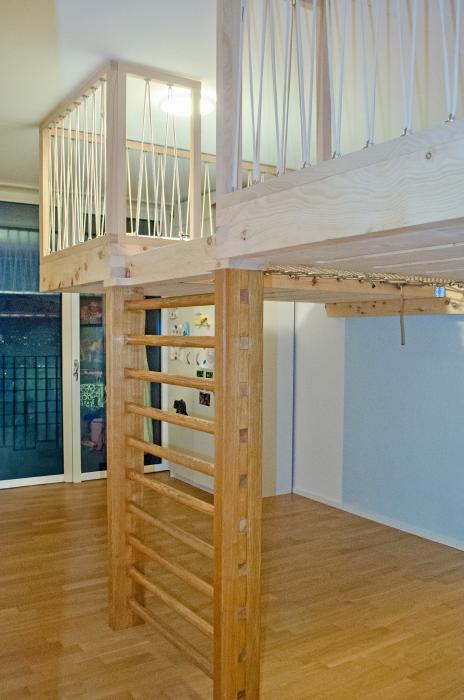 Hochbett mit Liegenetz Bauobjekt: 2025 Steiner RaumWohl GmbH Rohrgartenstrasse 59 9642 Ebnat-Kappel 071 565 51 01 steiner@raumwohl.ch www.raumwohl.ch Zum Unternehmensprofil ArchitektSteiner RaumWohl GmbH9642 Ebant-Kappel