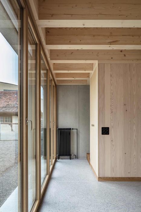 Türe aus Arvenholz offen Moderne Arvenholzstube