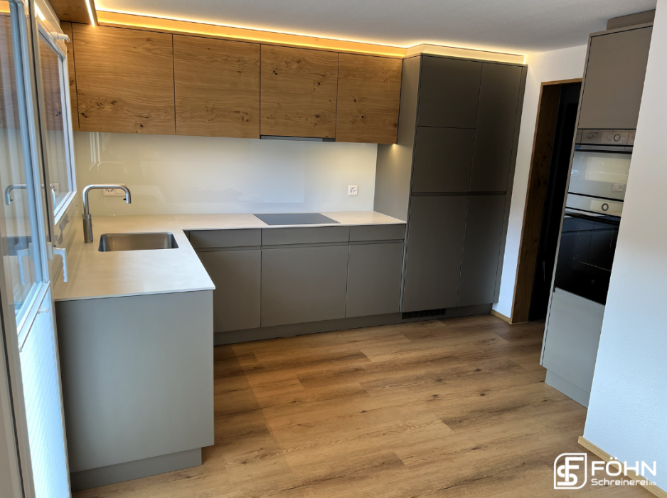 Küche mit lackierten Fronten und indirekter Beleuchtung Bauobjekt: 2025 Föhn Schreinerei AG Industrie 15 8842 Unteriberg 055 414 13 65 info@foehn-schreinerei.ch www.foehn-schreinerei.ch Zum Unternehmensprofil Arbeitsbereiche Küchen