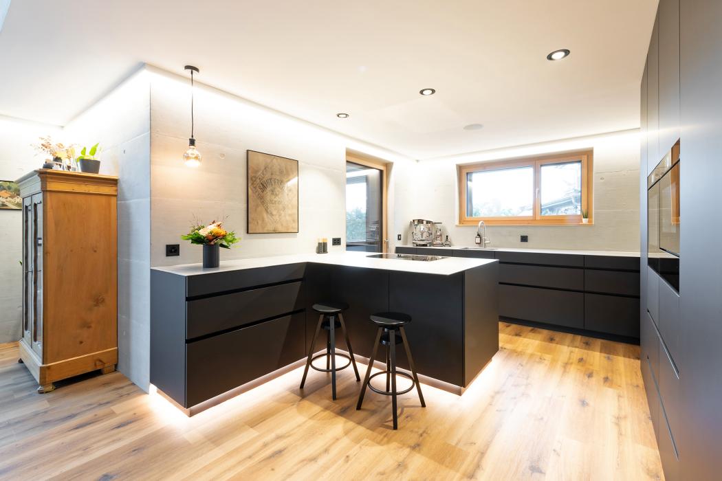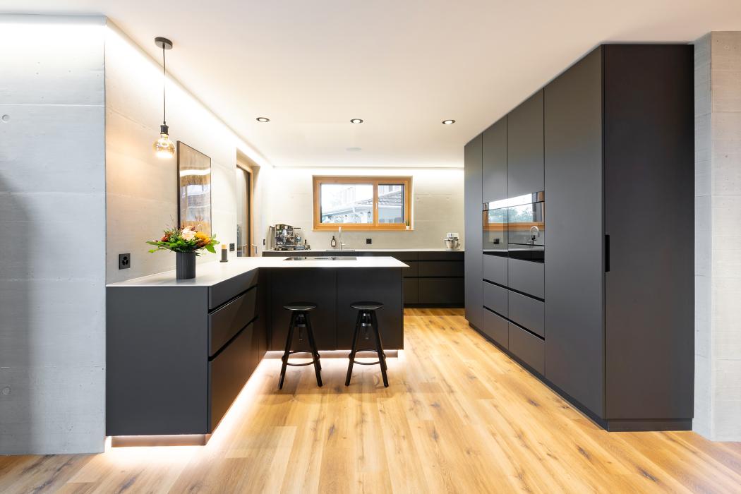 Küche Schwarz Bauobjekt: 2022 Schreinerei Fehlmann AG Rosengartenstrasse 16 8555 Müllheim Dorf 052 748 20 10 info@schreinerei-fehlmann.ch Zum Unternehmensprofil Arbeitsbereiche Küchen