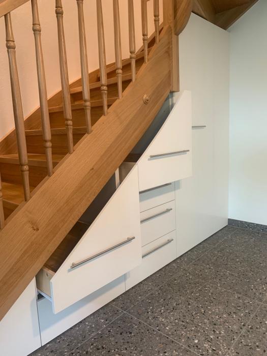 Perfekte Platzausnützung unter der Treppe Schreinerei Blatter AG Schulhausstrasse 18 3086 Zimmerwald 031 819 34 43 info@schreinerei-blatter.ch www.schreinerei-blatter.ch Zum Unternehmensprofil