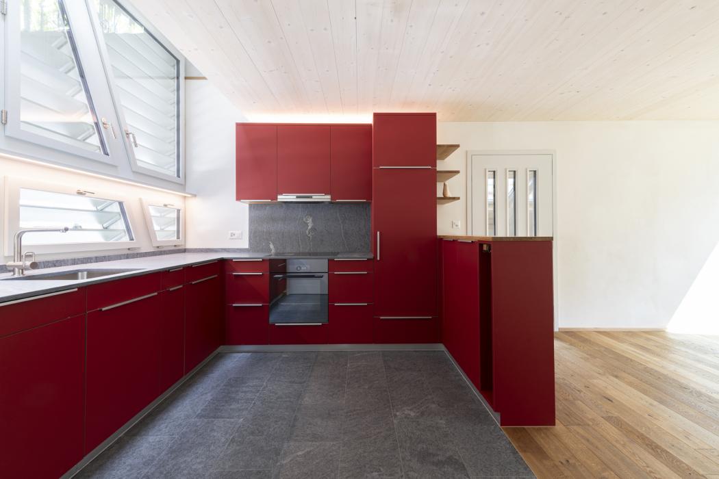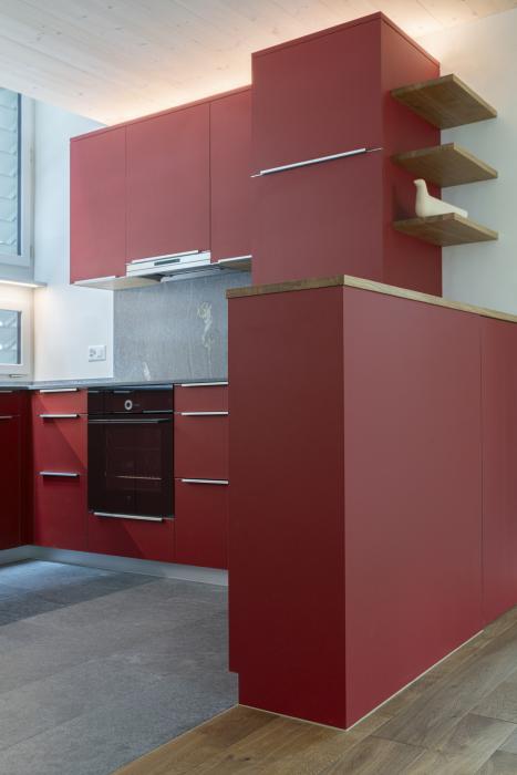 Rote Massivholzküche mit Eichenelementen Bauobjekt: 2025 holzx GmbH Hauptstrasse 44 4938 Rohrbach 062 965 09 59 info@holzx-schreiner.ch www.holzx-schreiner.ch Zum Unternehmensprofil Arbeitsbereiche Küchen