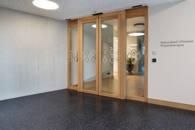 Schiebetüren verglast. Mit Automatikantrieb.