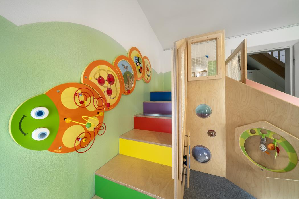 Spielzimmer in Kinderkrippe Löwenzahn Moser + Hungerbühler AG St. Gallerstrasse 116a 9200 Gossau SG 071 385 11 11 info@mh-schreinerei.ch www.mh-schreinerei.ch Zum Unternehmensprofil Arbeitsbereiche Innenausbau Möbel / Kollektionen Planung / Innenarchitektur Umbau / Restauration