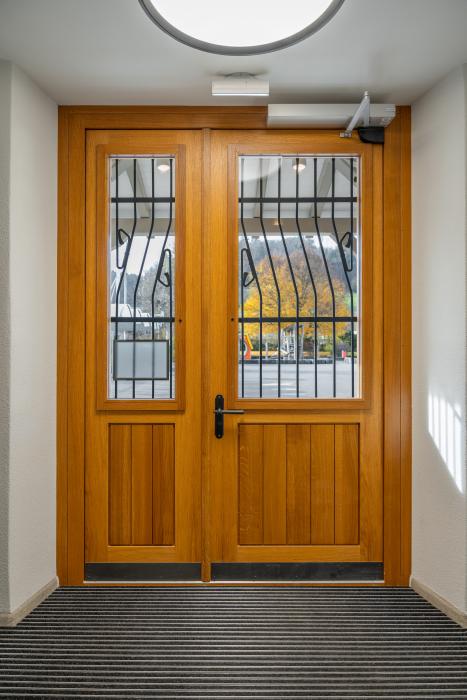Türe Schulhaus, Staffelbach Bauobjekt: 2025 Hauri AG Staffelbach Birkenweg 12 5053 Staffelbach 062 739 16 16 info@hauriag.ch www.hauriag.ch Zum Unternehmensprofil Arbeitsbereiche Türen Umbau / Restauration