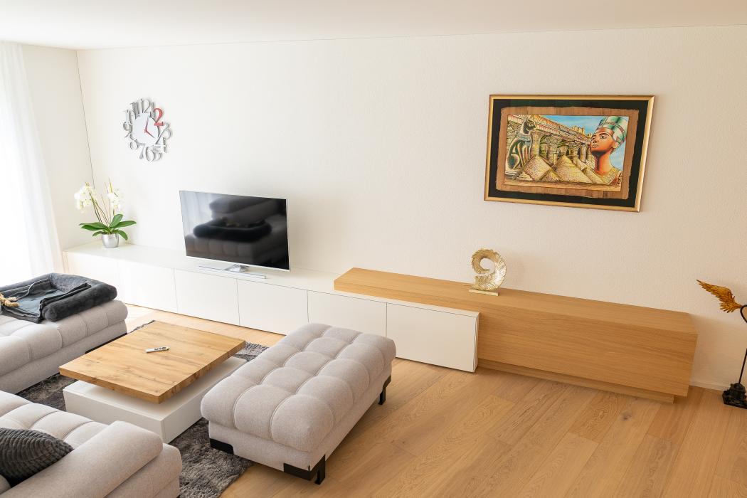 Wohnzimmer Bauobjekt: 2024/25 kkzüger GmbH Alpenblickstrasse 24 8853 Lachen SZ 055 451 54 90 info@kkzueger.ch www.kkzueger.ch Zum Unternehmensprofil Arbeitsbereiche Möbel / Kollektionen Innenausbau Planung / Innenarchitektur
